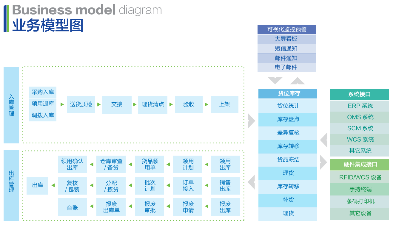 通過對入庫業務、出庫業務、調拔業務的管控,可以實現貨品批次管理、物料對應.庫存盤點、質檢控制等需求。并且對貨品全流程監控,提高倉庫作業效率,降低企業成本,全面提升企業倉庫管理的綜合能力。
